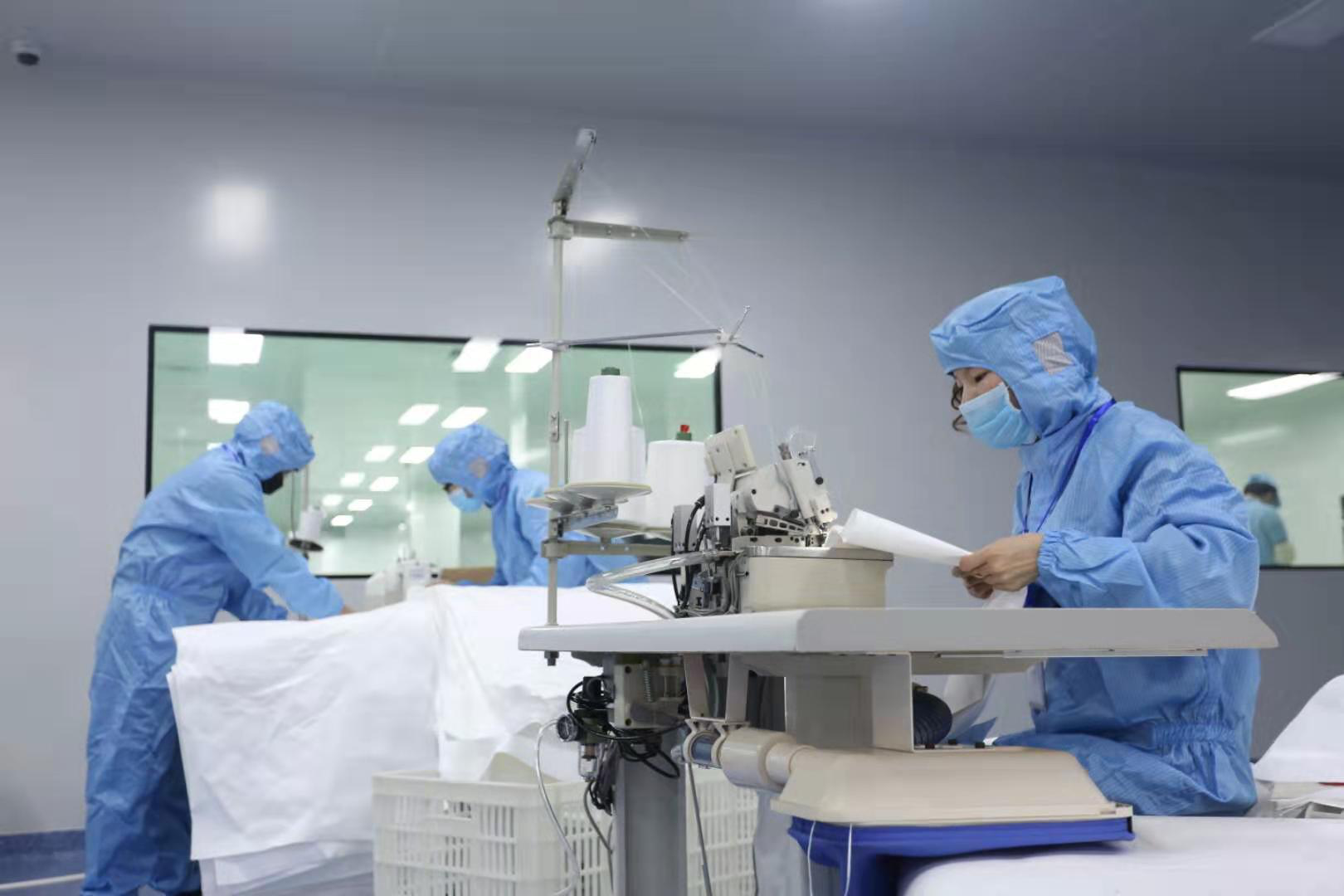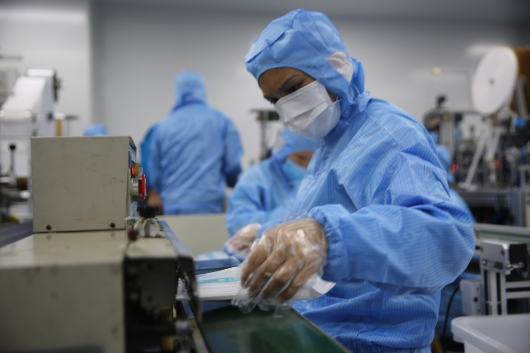 2月15日,尊龙时凯集团新引进的口罩生产线全力开动,正式出产医用口罩产品。据悉,该批5条生产线满负荷运转后,日产口罩约50万片。此前的2月4日,尊龙时凯集团联合晋江兴德织造有限公司启动了防护服生产,目前日均产能可达1000件。